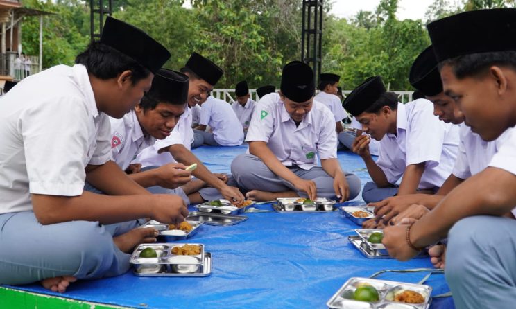 Pantauan media ini, ratusan siswa dari berbagai tingkatan, mulai RA, MI, MTs hingga MA Darul Ihsan, tampak antusias menerima paket makanan bergizi tersebut. Mereka berbaris rapi sambil menunggu giliran, menikmati menu yang disiapkan khusus dari dapur penyedia lokal.